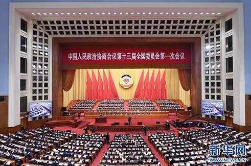 3月10日,全国政协十三届一次会议在北京人民大会堂举行第三次全体会议。 新华社记者 张领 摄