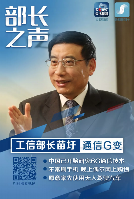 ——工信部部长苗圩接受央视新闻新媒体《部长之声》采访时谈6G。