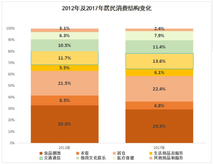 2017年中国城乡居民的恩格尔系数下降到29.3%,比2012年回落了3.7个百分点。