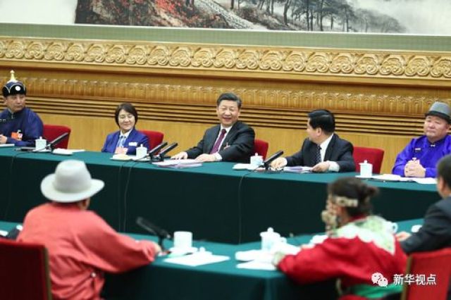3月5日,习近平来到他所在的内蒙古代表团参加审议。内蒙古赤峰市松山区大庙镇小庙子村党支部书记赵会杰代表,自豪地向总书记讲述村里近年来的变化。
