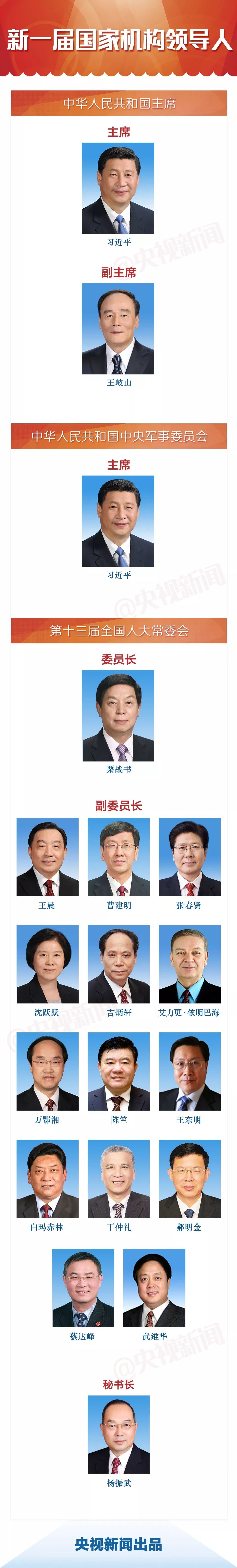 习近平同志全票当选为中华人民共和国主席、中华人民共和国中央军事委员会主席。