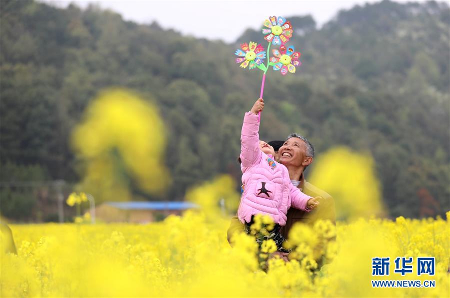 3月17日,游客在湖南省衡阳县库宗桥镇华山村的油菜花海中游玩。