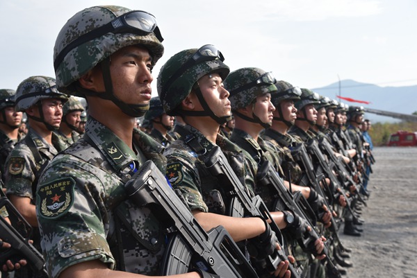 “金龙-2018”开训现场。图为中方参训队员整齐列队。(牛利摄)