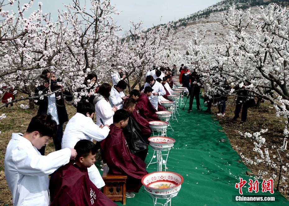 百名民众杏花林中剃“龙”头 网友结伴剃出“幸福中国”
