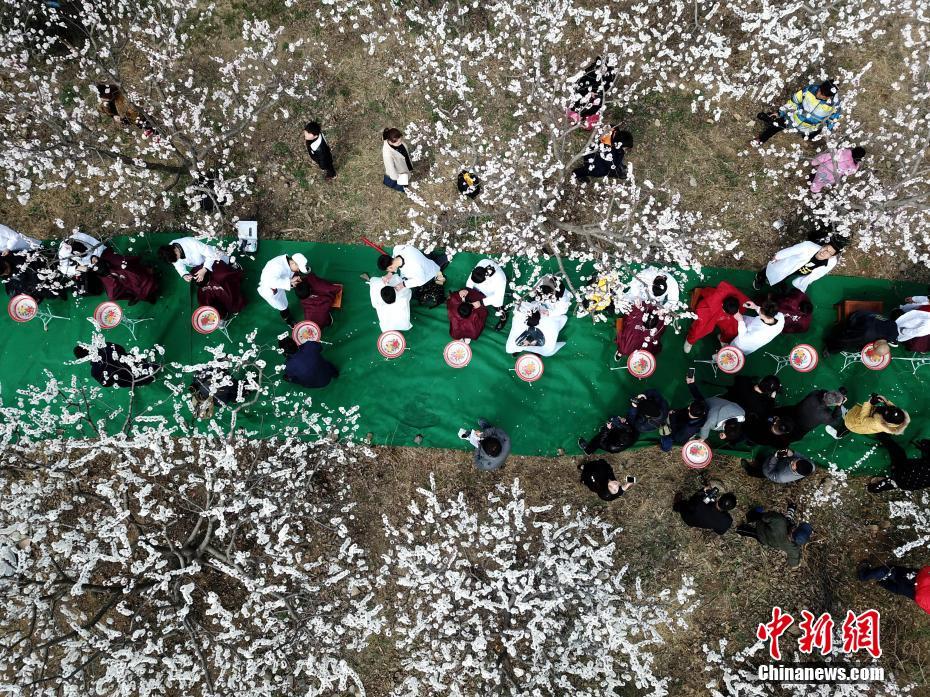 民众聚集在杏花林中剃“龙”头,寓意着幸福生活从头开始。王中举摄
