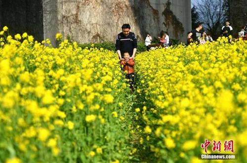 资料图:民众在油菜花海中赏花、游玩。 中新社记者 吕明摄