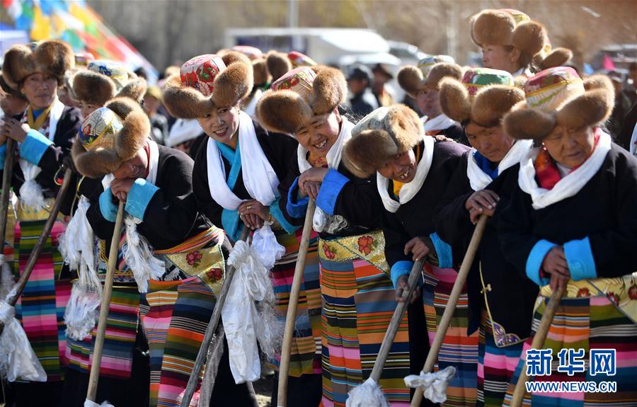 3月17日,山南市乃东区门中岗村妇女参加春耕开犁仪式。当日,西藏各主要农耕区农民举行传统盛大的春耕开犁仪式,祈求风调雨顺、五谷丰登。新华社记者觉果 摄
