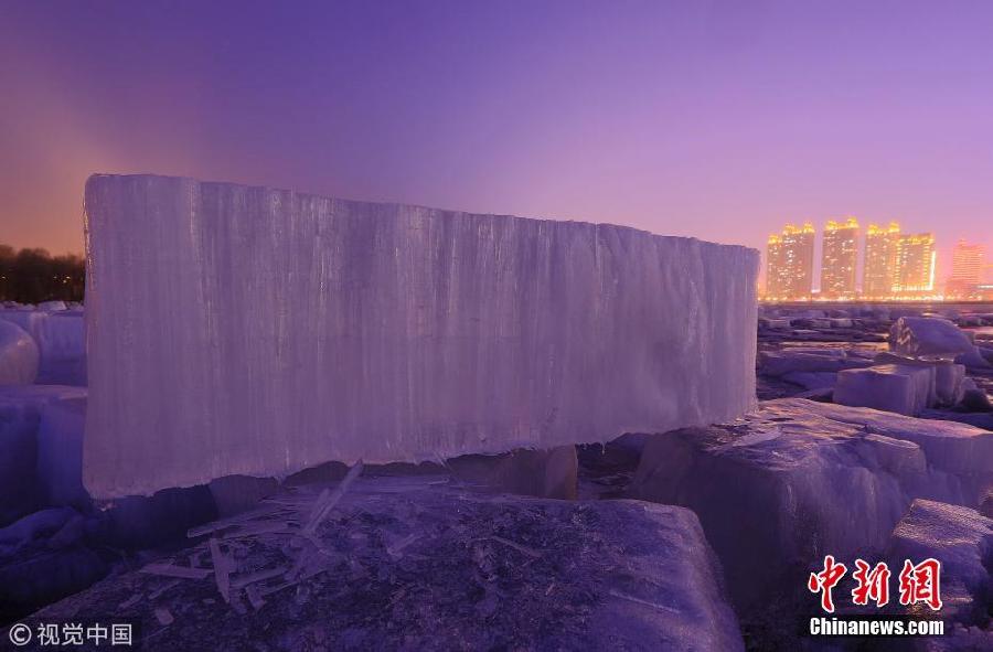 哈尔滨残冰消融 松花江江岸美轮美奂