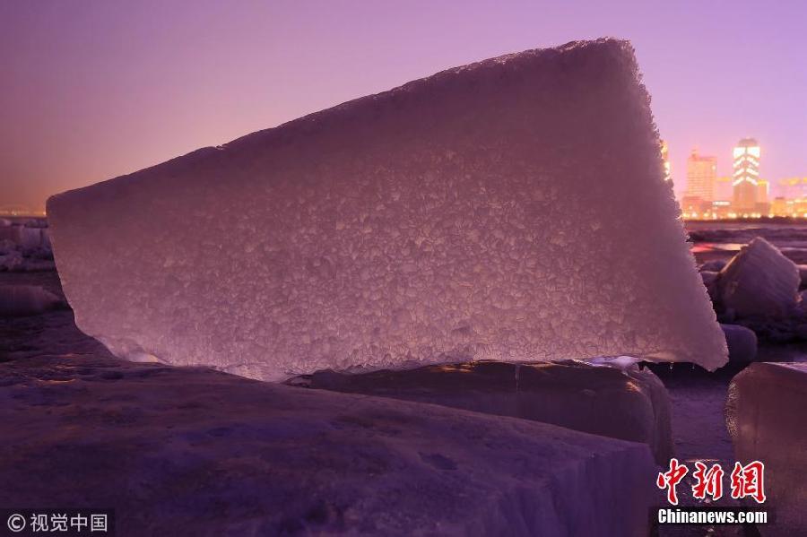 哈尔滨残冰消融 松花江江岸美轮美奂
