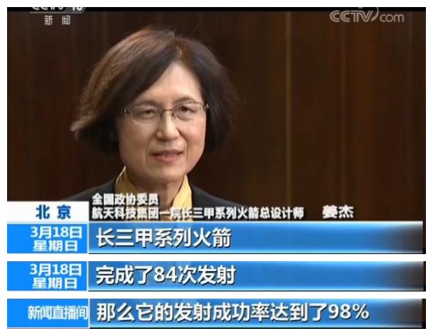 姜杰:“长三甲系列火箭完成了84次发射,那么它的发射成功率达到了98%。”