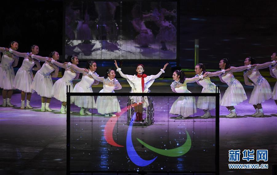 3月18日,2018年平昌冬残奥会闭幕式在平昌奥林匹克体育场举行。图为闭幕式上的北京文艺表演。 新华社记者夏一方摄