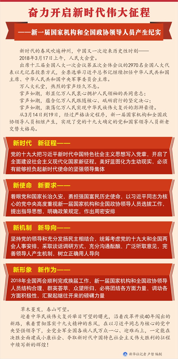 新华社北京3月19日电 题:奋力开启新时代伟大征程——新一届国家机构和全国政协领导人员产生纪实