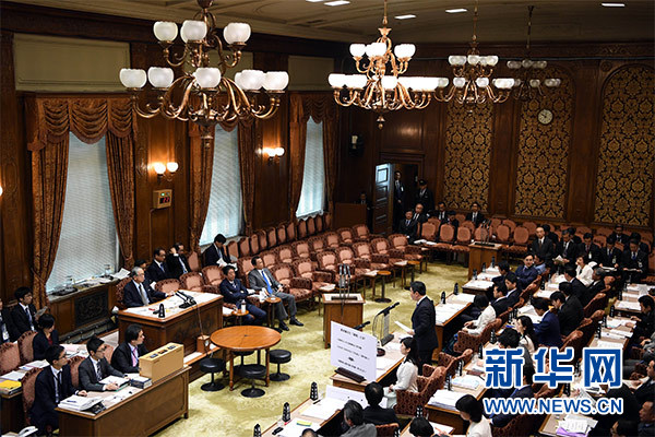 3月19日,在日本东京,日本参议院预算委员会集中审议财务省篡改森友学园“地价门”相关审批文件一事,在野党向财务省及首相安倍晋三追责,要求安倍内阁辞职。新华社记者马平 摄