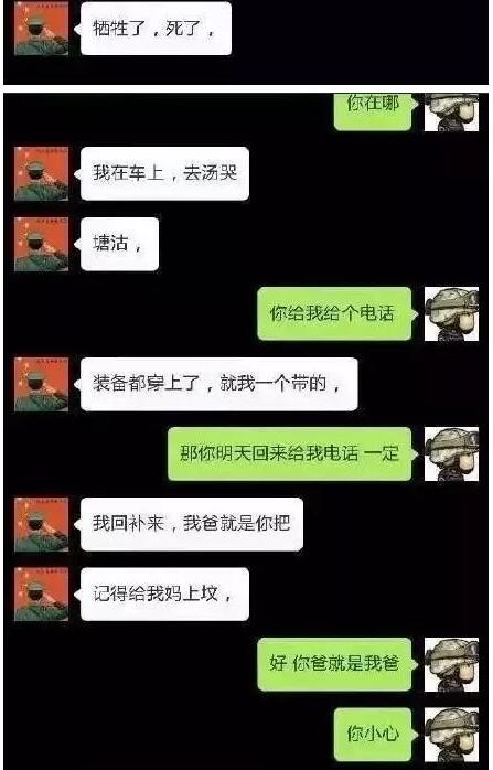 2015年8月13日凌晨一名赶赴塘沽爆炸现场救援的消防员和战友的对话如下: