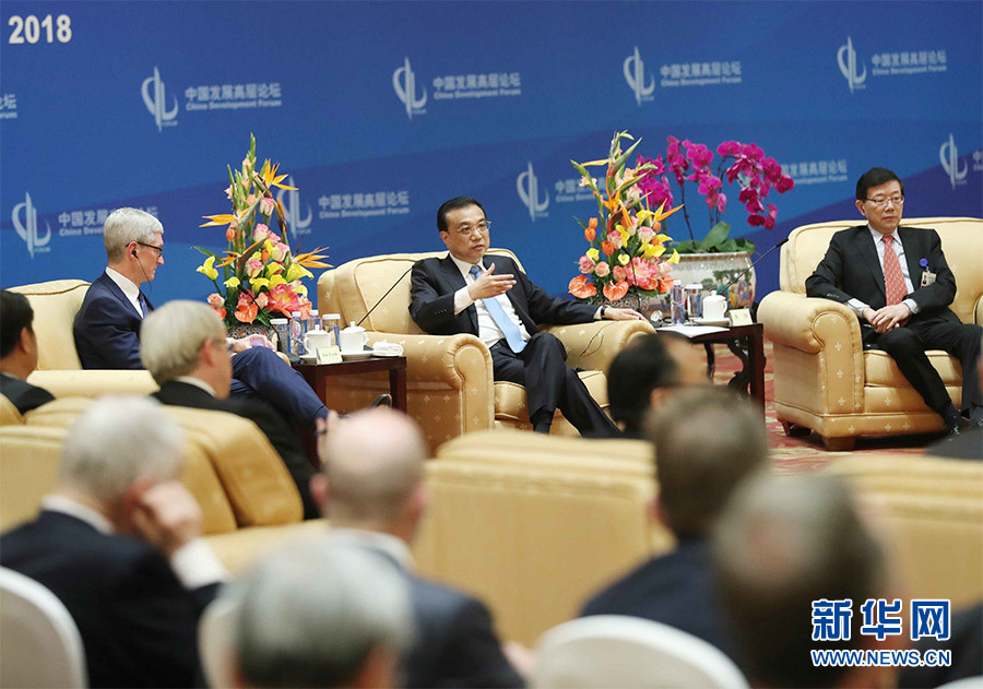 苹果公司首席执行官库克、株式会社日立制作所取缔役会长中西宏明、史带投资集团董事长格林伯格、谷歌公司首席执行官皮猜、剑桥大学校长杜思齐和教授诺兰、高通公司首席执行官莫伦科夫等发言,就他们关心的问题向李克强提问。李克强一一作答,并同他们深入交流。