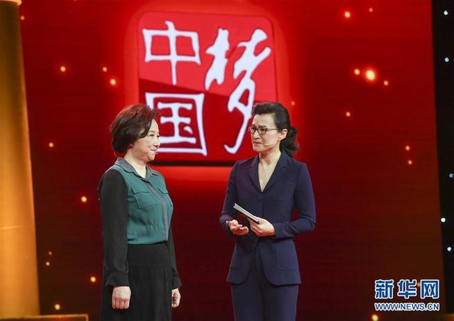钟扬的妻子张晓艳(左)在“时代楷模”发布仪式现场(3月26日摄)。新华社发