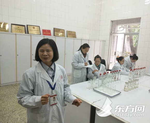 在范国琼的工作间,摆满了不同编号的实验器材。范国琼告诉东方网记者,基本上每天都要品尝两百杯以上,首先是把酒杯放到鼻子处闻酒,这可以判别酒质量的70%,然后再品尝,可以判别剩下部分。“不过每天由于不同的外界因素,个人判别能力会有起伏,这就需要团队配合,有时候3-5人共同尝评,最终形成一致意见。”
