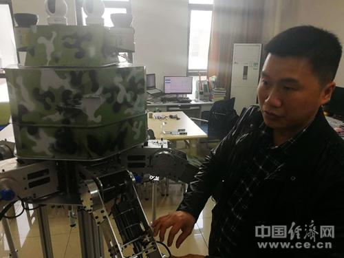 蒋刚介绍“龙骑士”机器人。经济日报-中国经济网记者佟明彪/摄
