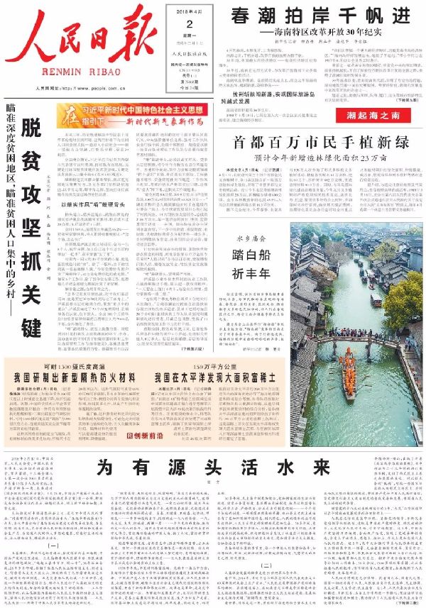 来源:《人民日报》(4月2日 第1版),作者:宣 言