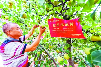 河南省洛阳市孟津县会盟镇铁炉村万亩梨种植基地内的“党员示范树”。黄政伟 摄/光明图片