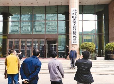 三月十三日,北京市民在国家工商管理总局门前拍照留念。樊甲山摄(人民视觉)