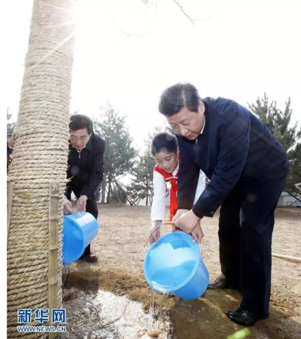 中共中央总书记习近平在山西考察调研时强调: “ 要广泛开展国土绿化行动,每人植几棵,每年植几片,年年岁岁,日积月累,祖国大地绿色就会不断多起来,山川面貌就会不断美起来,人民生活质量就会不断高起来。