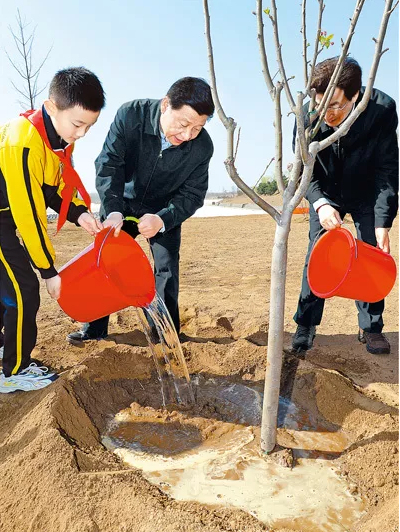 植树期间,习近平同参加植树的干部群众谈起造林绿化和生态环保工作。他强调,植树造林历来是中华民族的优良传统。今天,我们来这里植树既是履行法定义务,也是建设美丽中国、推进生态文明建设、改善民生福祉的具体行动。