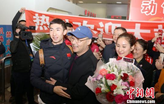 武大靖和前来接机的父母拥抱(宋洋摄)
