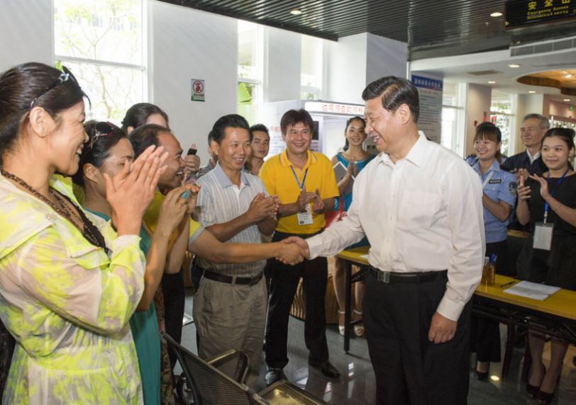 2013年4月10日上午,习近平在三亚国际邮轮码头同候船旅客亲切交流。