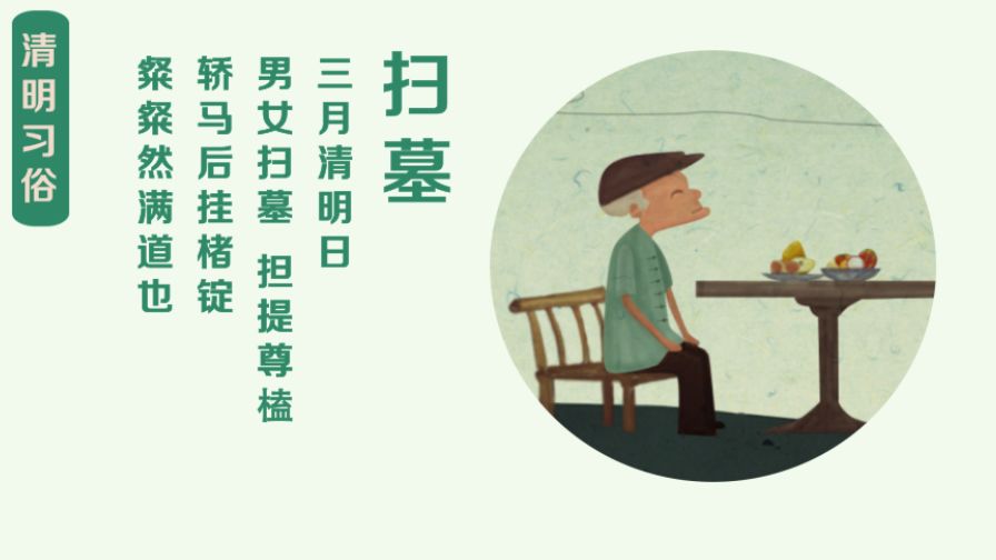 清明扫墓,谓之对祖先的“思时之敬”。其习俗由来已久。明《帝京景物略》载:“三月清明日,男女扫墓,担提尊榼,轿马后挂楮锭,粲粲然满道也。拜者、酹者、哭者、为墓除草添土者,焚楮锭次,以纸钱置坟头。望中无纸钱,则孤坟矣。哭罢,不归也,趋芳树,择园圃,列坐尽醉。”其实,扫墓在秦以前就有了,但不一定是在清明之际,清明扫墓则是秦以后的事。到唐朝才开始盛行。《清通礼》云:“岁,寒食及霜降节,拜扫圹茔,届期素服诣墓,具酒馔及芟剪草木之器,周胝封树,剪除荆草,故称扫墓。”并相传至今。
