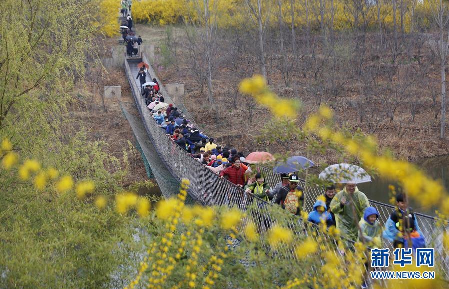 4月5日,游人在山东省临沂市沂南县竹泉村踏青游玩。清明小长假期间,人们纷纷走到户外,踏青赏花,亲近自然。 新华社发(王彦冰摄)