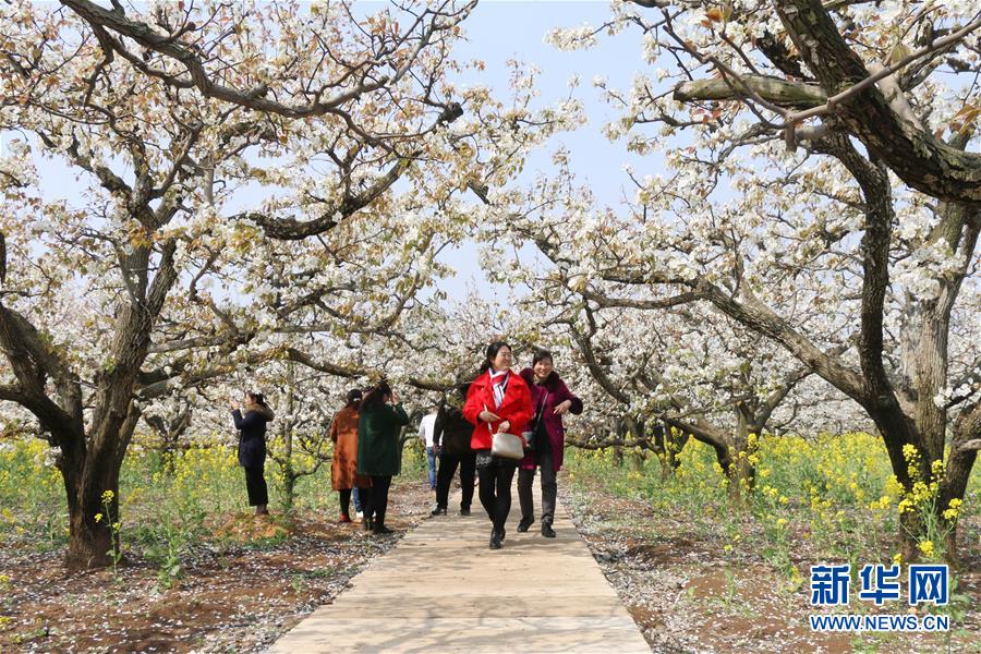 4月5日,游人在江苏省连云港市灌云县观赏梨花。清明小长假期间,人们纷纷走到户外,踏青赏花,亲近自然。 新华社发(吴晨光摄)