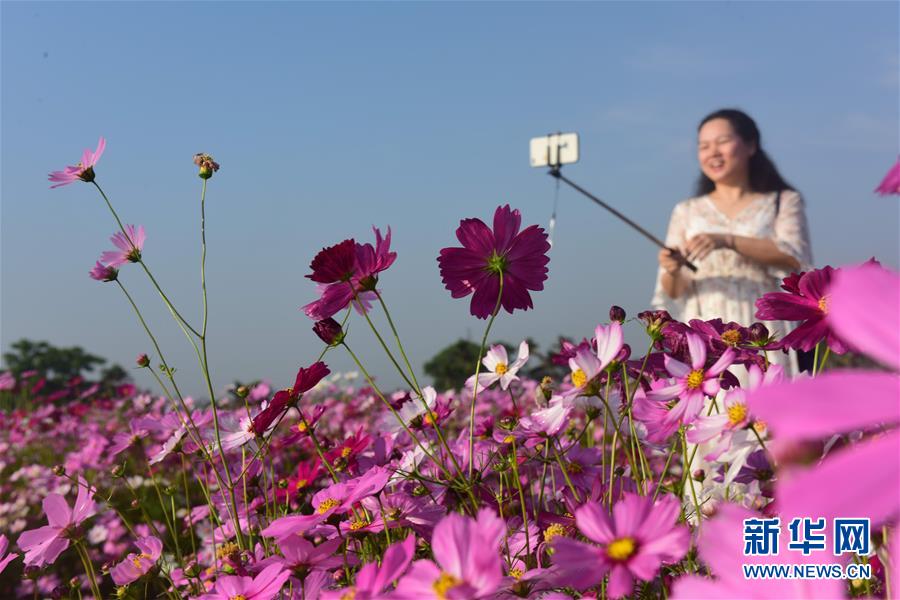 4月5日,游人在海南琼海龙寿洋花海公园里踏青赏花。清明小长假期间,人们纷纷走到户外,踏青赏花,亲近自然。 新华社发(蒙钟德摄)
