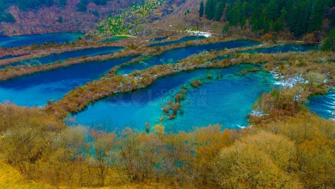 九寨沟冬日航拍:壮美景色依旧!(记者 郝飞 摄)