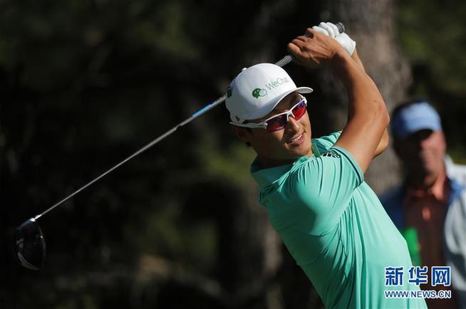 4月5日,李昊桐在比赛中。当日,在美国佐治亚州奥古斯塔国家高尔夫俱乐部举行的美国高尔夫球大师赛首轮比赛中,中国选手李昊桐打出69杆低于标准杆3杆的成绩,并列第四。新华社/路透