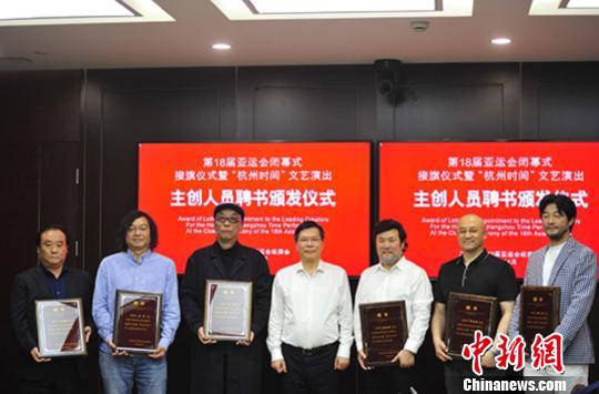 中新网杭州4月7日电(见习记者 张斌 通讯员 刘学会 徐小川 郑媛)6日,记者从杭州亚组委获悉,中国著名编导家陈维亚将担任于雅加达举行的第18届亚运会闭幕式接旗仪式暨“杭州时间”文艺演出艺术总监。日前,杭州亚组委副主席兼秘书长、杭州市委副书记、市长徐立毅已向陈维亚及主创团队成员颁发聘书。