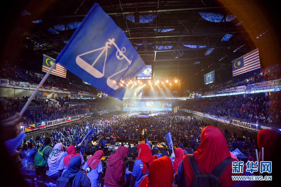 4月7日,在马来西亚吉隆坡,支持者参加执政联盟国民阵线(国阵)竞选宣言发布仪式。