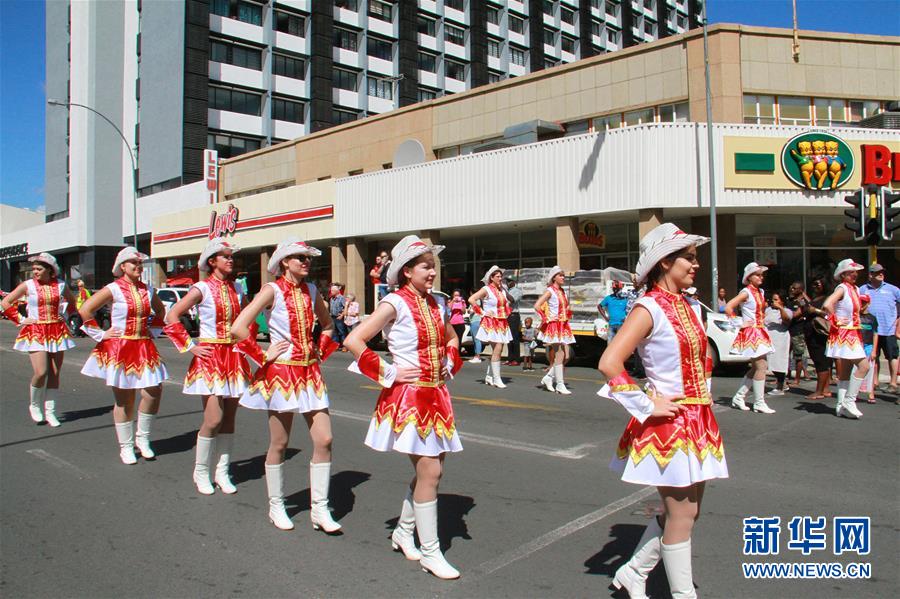 4月7日,在纳米比亚首都温得和克,人们参加狂欢节花车游行。纳米比亚首都温得和克7日举行狂欢节花车游行,这是第66届温得和克狂欢节的一个组成部分,吸引了数千名游客观看。新华社记者 吴长伟 摄