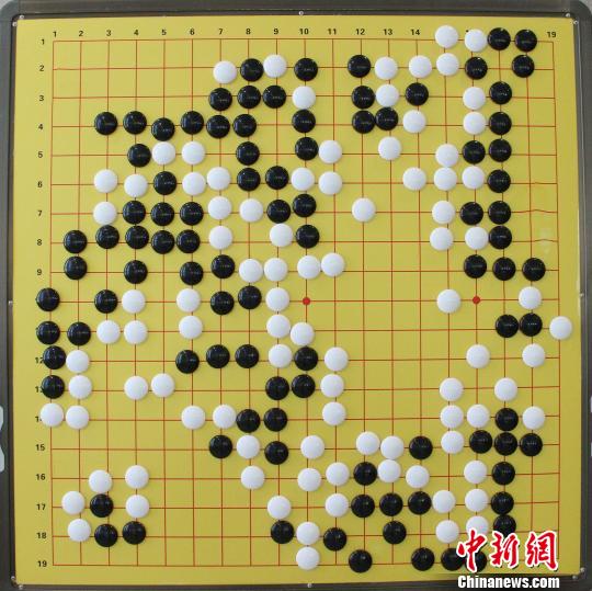 图为争霸赛最终棋局,柯洁(白棋)获胜。 张远 摄