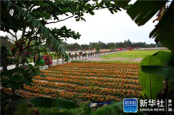 ↑游客在海南省琼海市博鳌镇南强村的花海中游玩(2018年3月24日摄)。新华社记者 郭程 摄