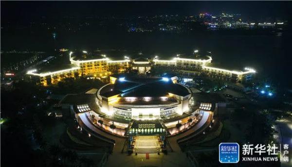 ↑航拍博鳌亚洲论坛会议中心夜景(2018年3月23日摄)。新华社记者 杨冠宇 摄