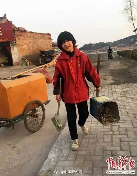 今年49岁的温秋平,在山西沁县当环卫工。女儿刘淼鑫从小就帮着妈妈干家务。从9岁开始,每到周末、节假日她都跟着母亲去扫马路,如今已经坚持了3年。她说:"俺多干点,俺妈就能少干点,这样可以让妈妈早点回家。"