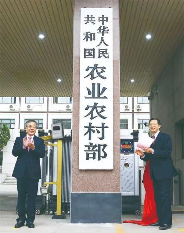 4月3日,中华人民共和国农业农村部正式揭牌。中共中央政治局委员、国务院副总理胡春华出席揭牌仪式。