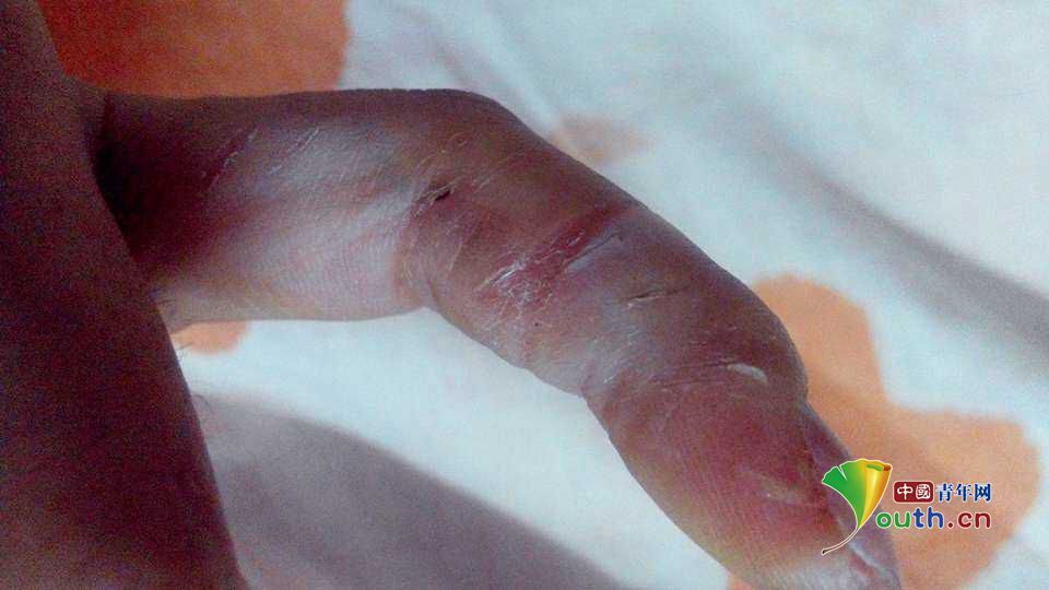 说着,何菲翻出了手机中的照片,照片上是一根裂满口子的手指。当时,小组每人都有几根手指是裂痕连着裂痕的。这只是一个缩影,如今,许多组员的手在反复割伤的位置已经结下了厚厚的老茧。