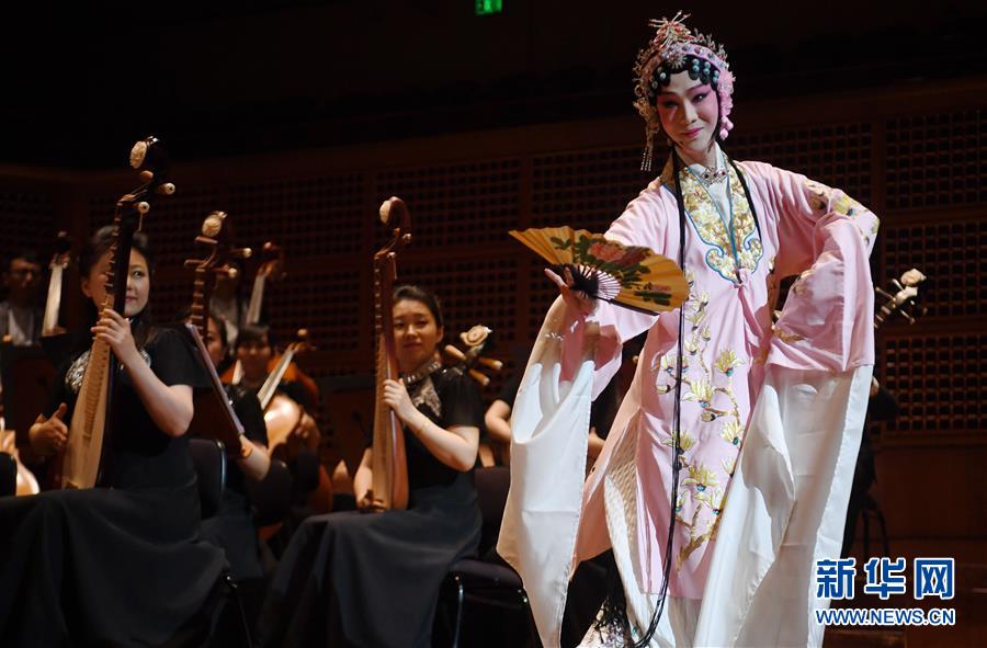 4月10日,在美国旧金山,演员董飞表演昆曲《皂罗袍》。新华社记者吴晓凌 摄