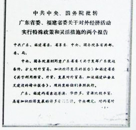 1979年7月15日,中共中央、国务院批转广东省委、福建省委关于对外经济活动实行特殊政策和灵活措施的两个报告,即著名的1979年中央50号文件。资料图