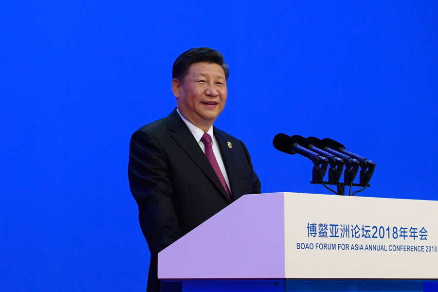 4月10日,国家主席习近平在海南博鳌出席博鳌亚洲论坛2018年年会开幕式并发表题为《开放共创繁荣创新引领未来》的主旨演讲。图片来源:新华社