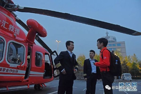 宿州市皖北煤电集团总院,医务人员带着待移植的器官登上救援直升机。