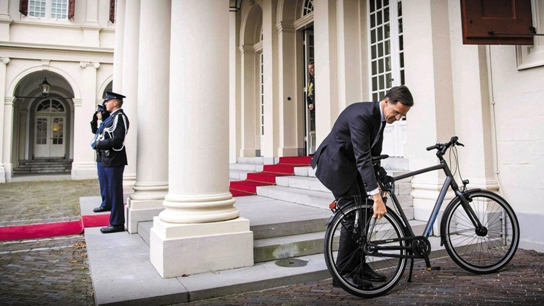 在王宫内给自行车上锁的吕特首相。图片来自网络