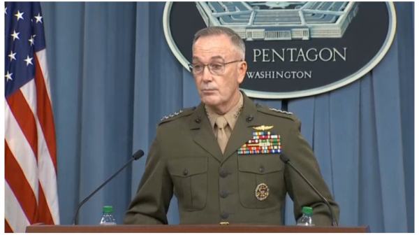 美国国防部正在召开记者会,参联会主席邓福德宣布第一个打击目标就是一个科研中心,第二个目标是霍姆斯以西一个化武储存中心,第三个目标是靠近第二个目标的一个化武储存和军事指挥综合体。